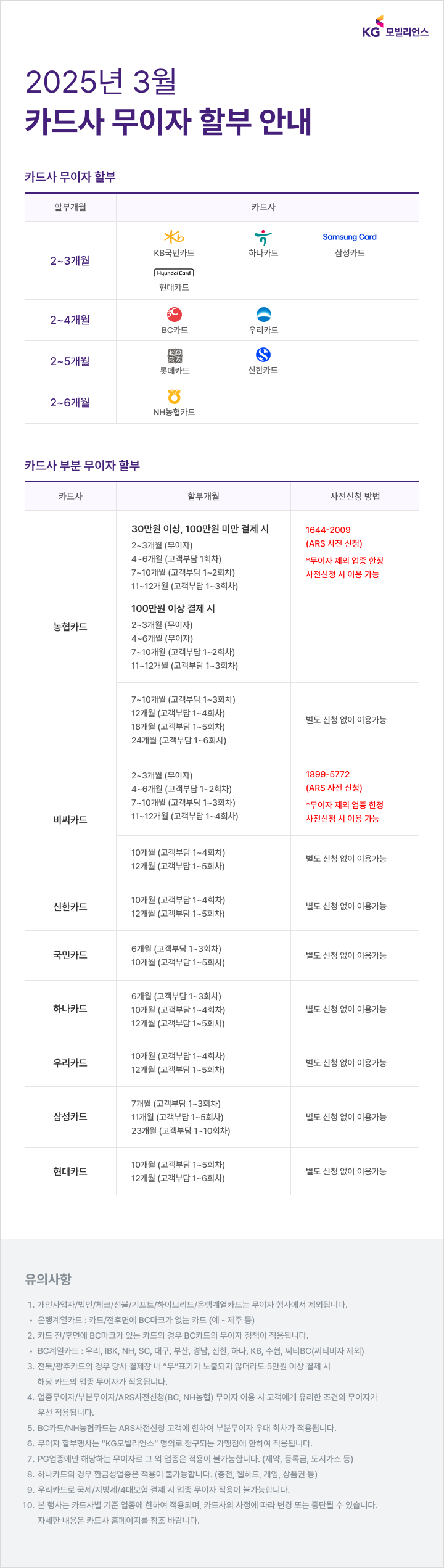 [공지사항] 2025년 3월 카드사 무이자 할부 안내