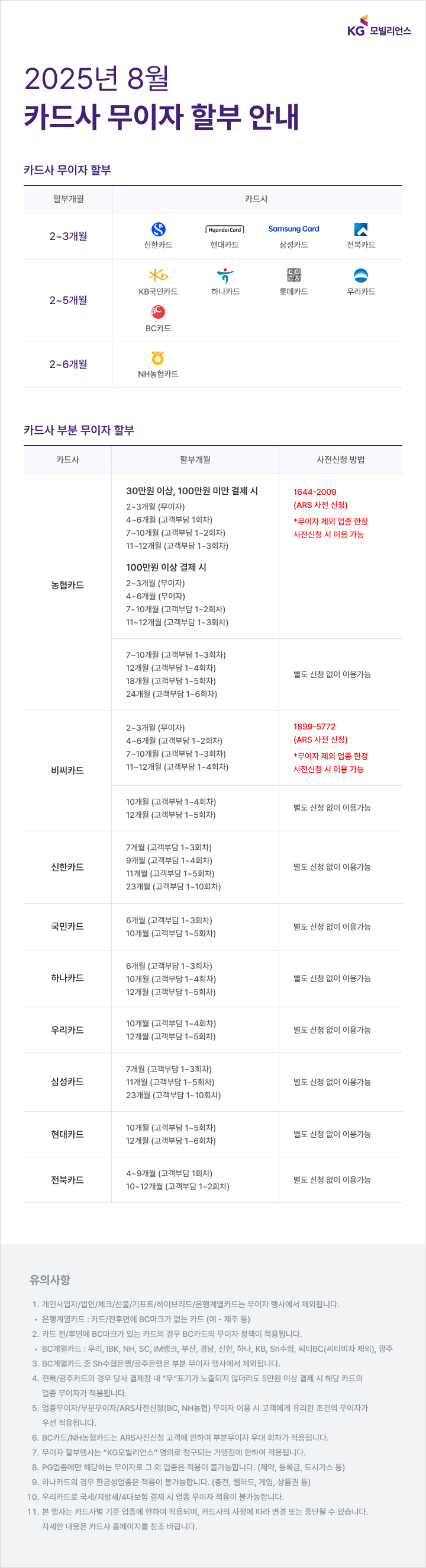 [공지사항] 2025년 8월 카드사 무이자 할부 안내