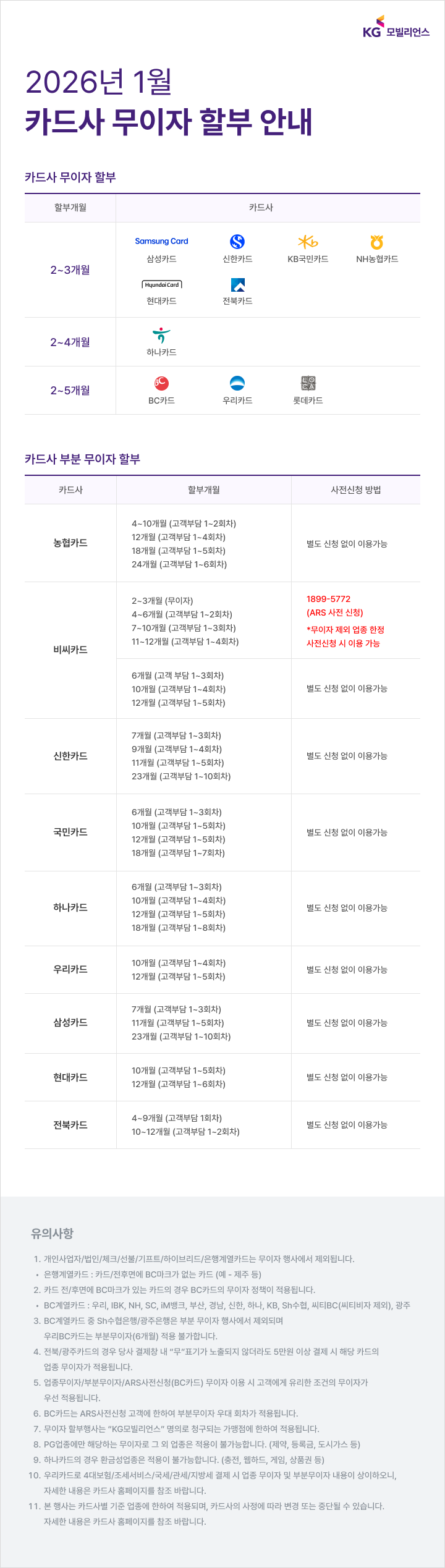 1월 주요 카드사 무이자 할부 혜택을 준비했습니다 🙂