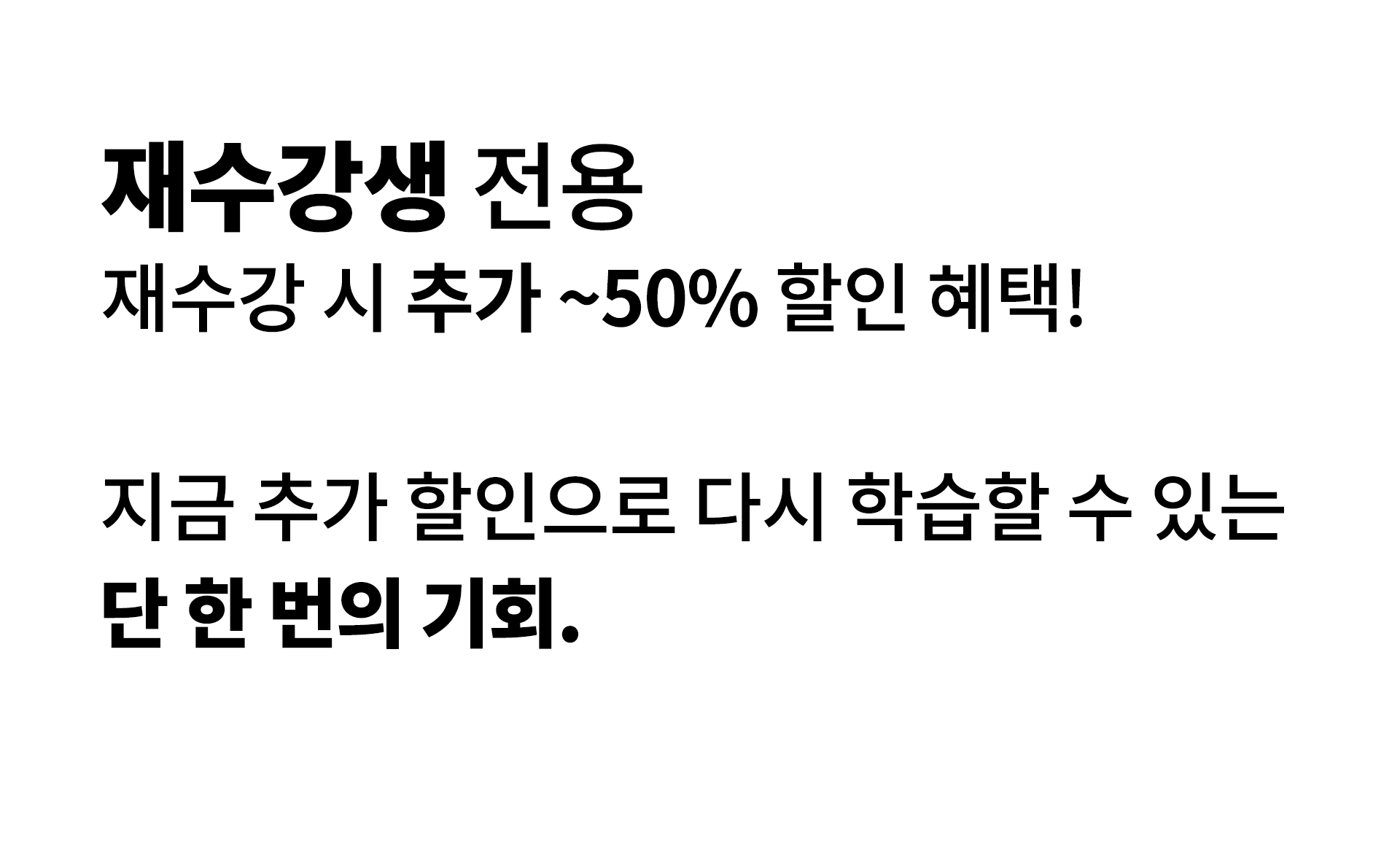 ✅ 단 한 번뿐인 재수강 기회! 재수강 할인 혜택은 1인 1회만 적용됩니다.